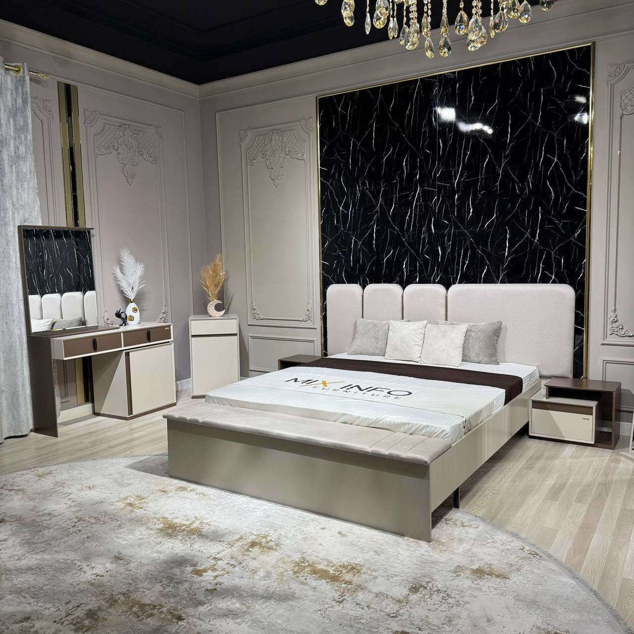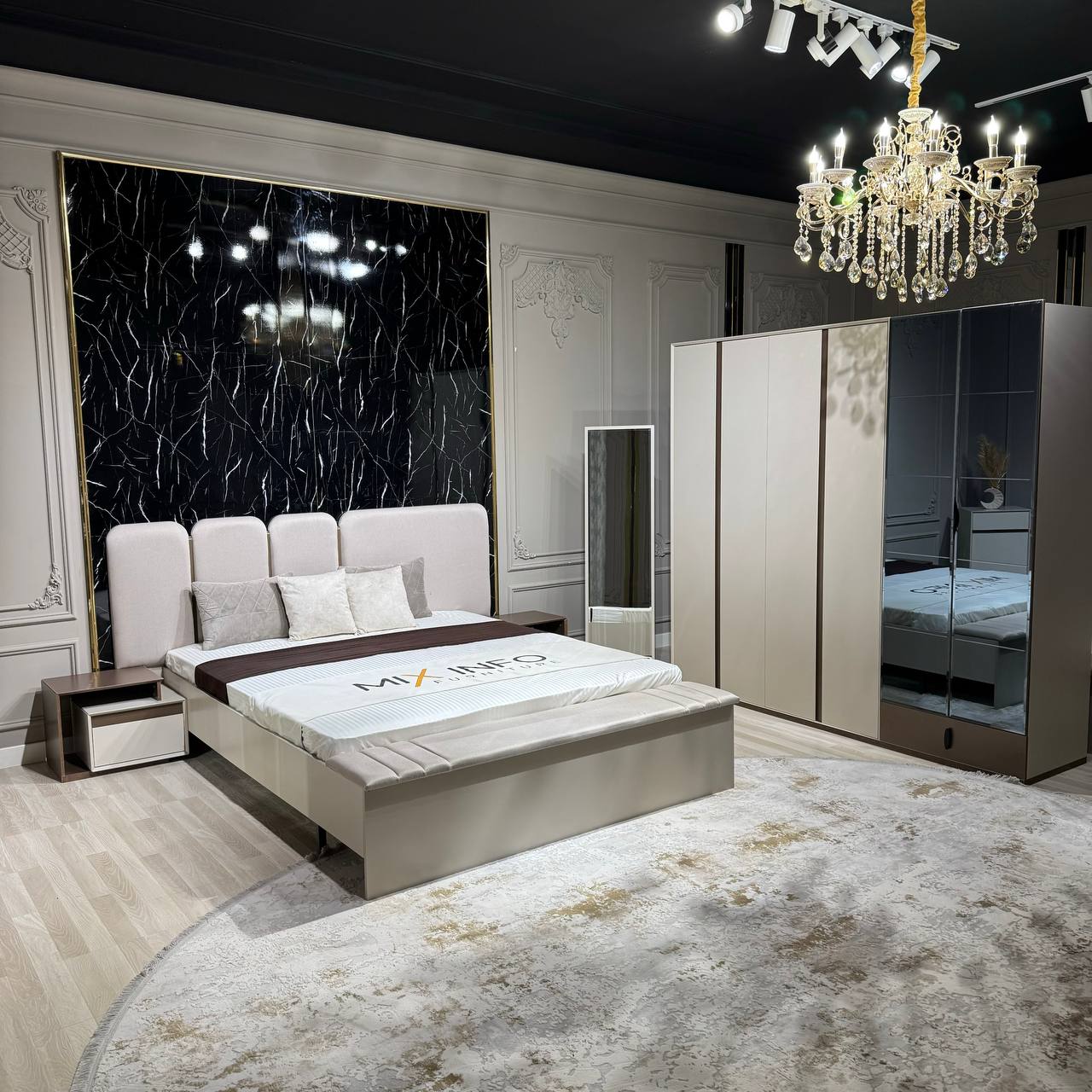 Komplekt tarkibi: • Kravat: 228 × 242 × 119+sofa • Kravat: ichki qismi(Matras uchun) 180×210 • Tumba (2 dona): 58,5 × 37 × 43 • Chestr: 50 × 43 × 83,5 • Shkaf: 230 × 55 × 215 (ichida seyf mavjud) • Tryumo: 122 × 43 × 174 • Tik Oynak 44 × 165 Material: •90% MDF Rossiya •10% Orex rangdagi mahsus keltirilgan yuqori sifatli laminat Russiya Furnitura: • Alkan firmasi (Turkiya) Ishlab chiqarish texnologiyasi: • Germaniya Turkiya, Xitoy, texnologiyasi asosida, 45 graduslik yo‘nalishda ishlab chiqarilgan. Qo‘shimcha xususiyatlar: • Shkaf ichida maxfiy seyf mavjud • Keng va amaliy dizayn • mebel eksentirik asosida quriladi. Kafolat: • 3 yillik kafolat Originallik kafolati: • Mahsulotning originalligini Mix Info logotipi orqali tasdiqlashingiz mumkin.